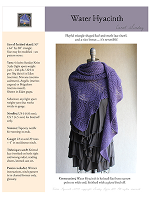Water Hyacinth Kit includes 4 50-gram skeins Sunday Knits 3ply (sport weight) yarn.