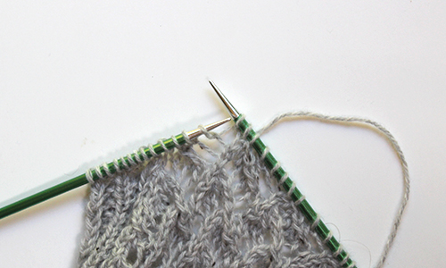 What a useful technique this is! Use it to make a tidy eyelet that looks exactly as thought you'd worked a regular yarnover in the previous row. These afterthoughts tend to be a bit smaller than traditional yarnovers are.