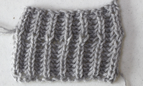 brk - brioche knit: Knit next double-stranded stitch with both strands together, as if it were one stitch.