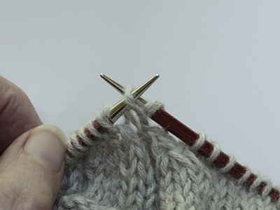 Pick up the first strand inserting the right needle from back to front.