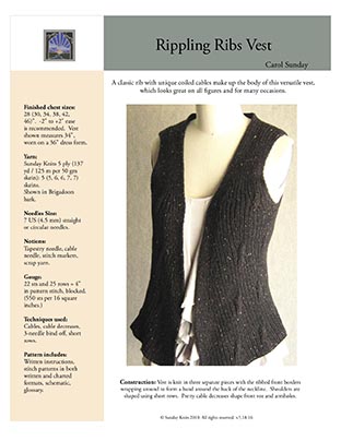 Kit includes 5 (6, 6, 7, 7, 8) 50-gram skeins 5-ply yarn