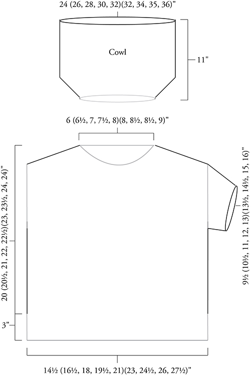 Cowl and bottom ribbing are picked up and knitted. |