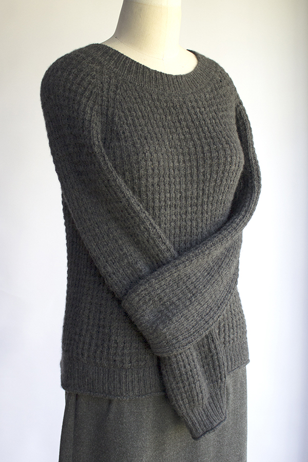 My own cushy thermal rib stitch pattern in a top-down raglan pullover