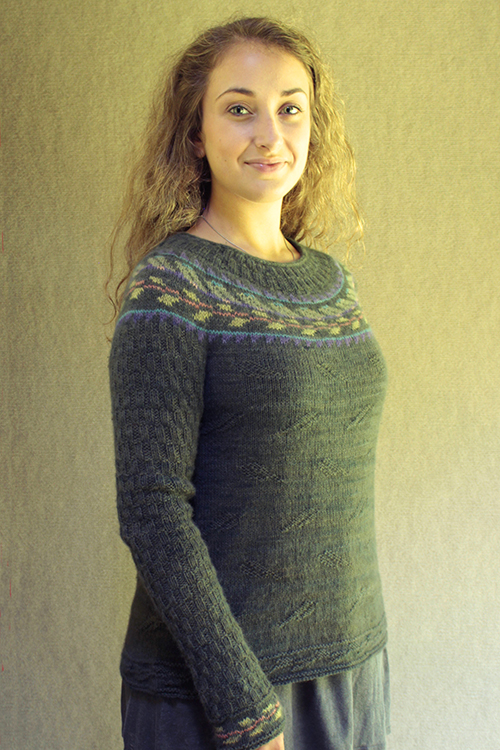 Top-down seamless pullover with a stranded yoke and sleeves.