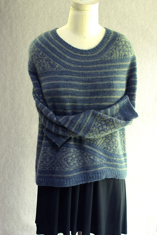 Stranded top-down seamless pullover.