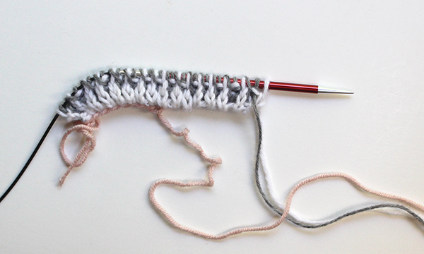 Here we are after a few rows of brioche knitting.