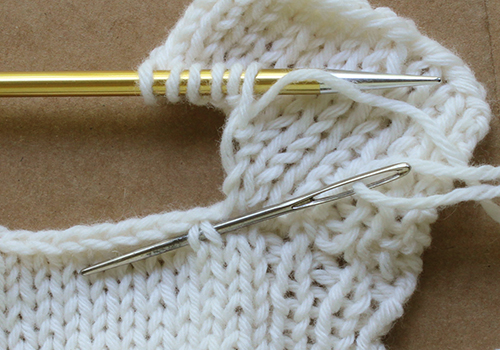 Also use this same technique for grafting live stitches to any completed stitches, as for a turned up hem.