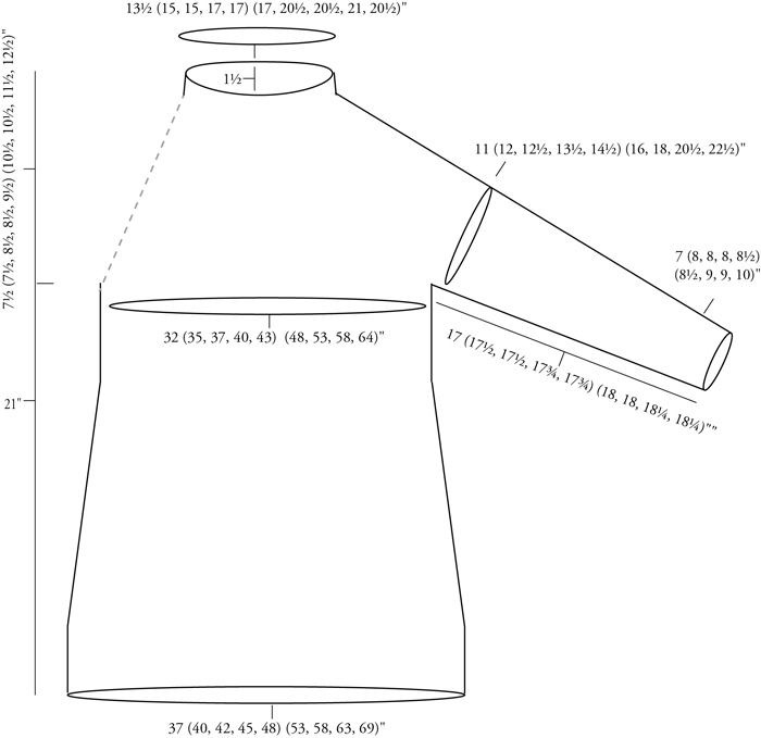 The sweater bottom picks up from the original cast-on stitches to work downward. Optional set-in pockets use Elizabeth ZimmermanŐs afterthought pocket method.